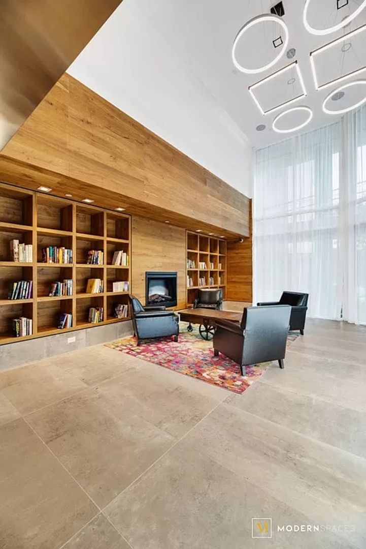 The sophisticated wood-paneled lobby with its inviting fireplace and 24 hour manned desk to accommodate your every need welcomes residents and guests with a chic modern sensibility that is enhanced throughout each apartment.